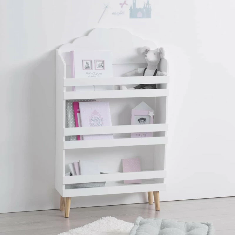 Bibliothèque enfant blanche et pieds naturels Atmosphera.