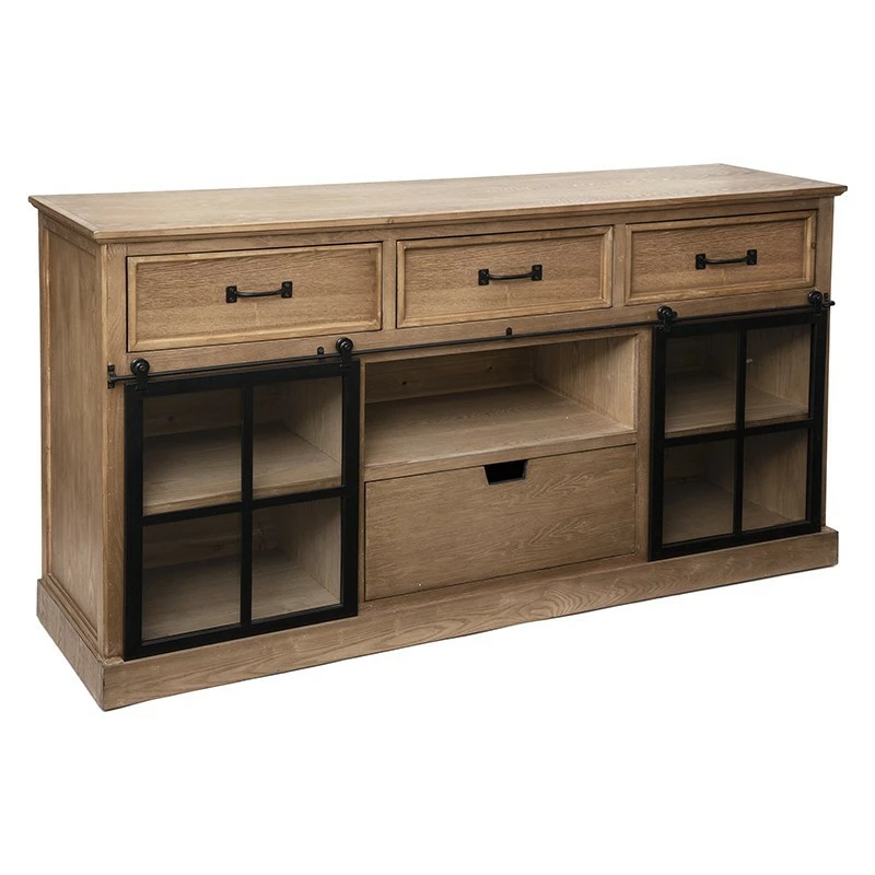 Optez pour un buffet robuste et tendance avec le buffet Danik composé de 2 portes coulissantes et de 4 tiroirs.