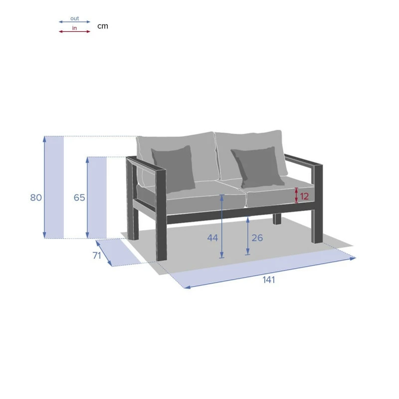 Complétez votre salon de jardin Evasion de la marque Hespéride avec ce canapé extérieur 2 places de la même collection.