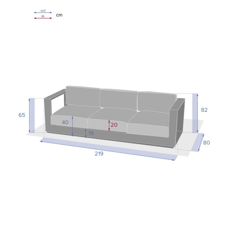 La structure est en aluminium traité époxy antirouille. Les coussins polyester 275 g/m² sont déhoussables pour un entretien facile et traités déperlants permettant à l’eau de glisser sans pénétrer dans la matière.