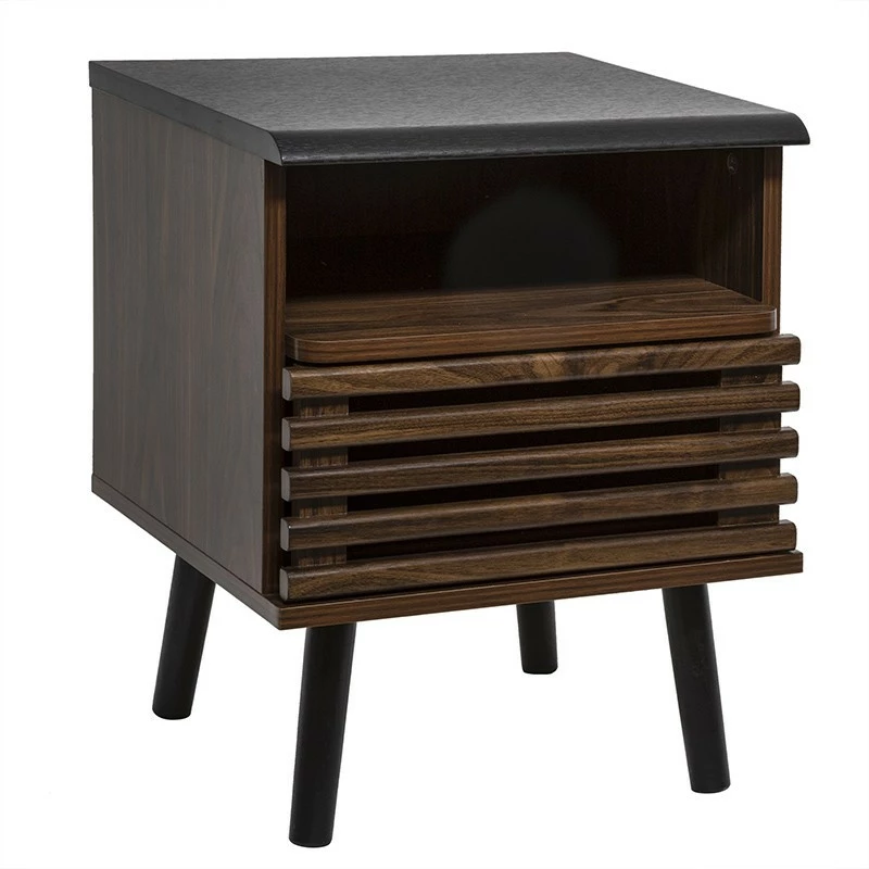 Table de chevet à 1 porte de la marque Atmosphera. Ce modèle Asmar apportera une touche d’élégance à votre intérieur avec son coloris noir et naturel foncé.