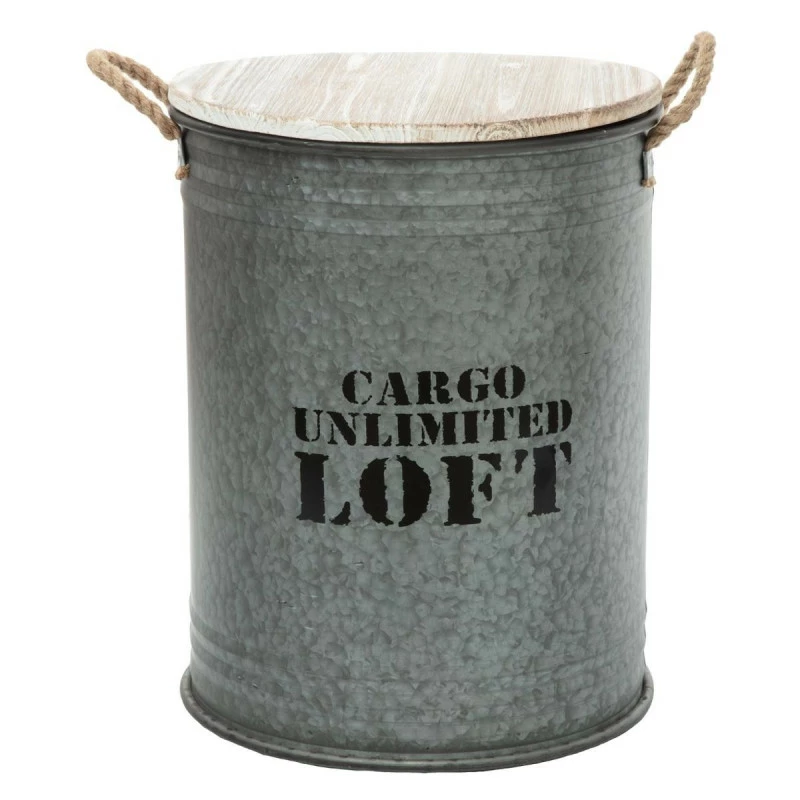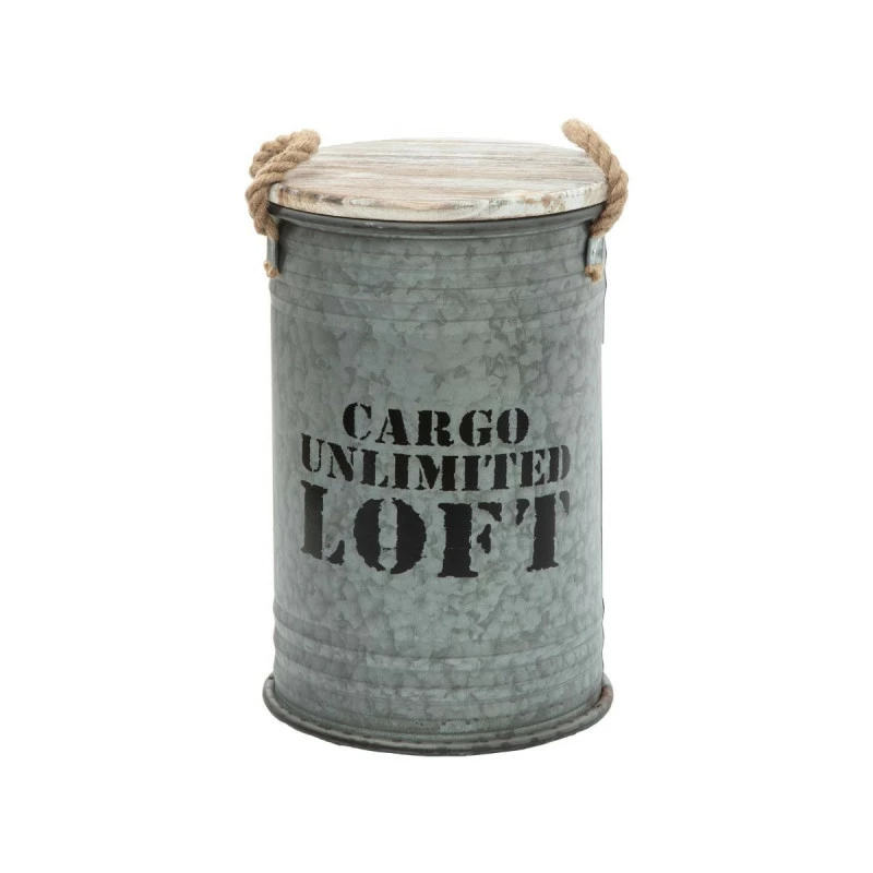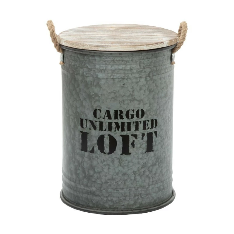 Lot de 3 coffres en formes de bidons gris mĂ©tallisĂ© de la marque Atmosphera. Adopter un style industriel grĂące Ă ces bidons Loft avec leur plateau en sapin et leurs poignĂ©es en chanvre.Â