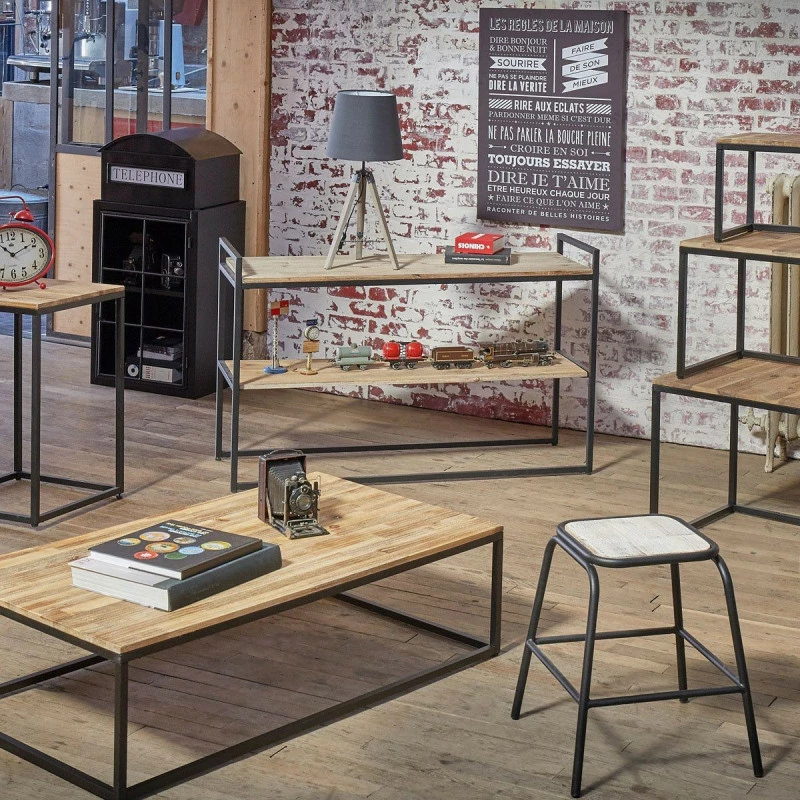 Console 2 Ă©tagères, cadre en mĂ©tal de la marque Atmosphera. Cette console au style vintage et sobre s’adaptera aux dĂ©corations les plus simples et s’avĂ©rera des plus utiles pour avoir Ă porter de main ce dont vous avez besoin. L’association du coloris bois et noir mat est Ă la pointe de la dernière tendance.