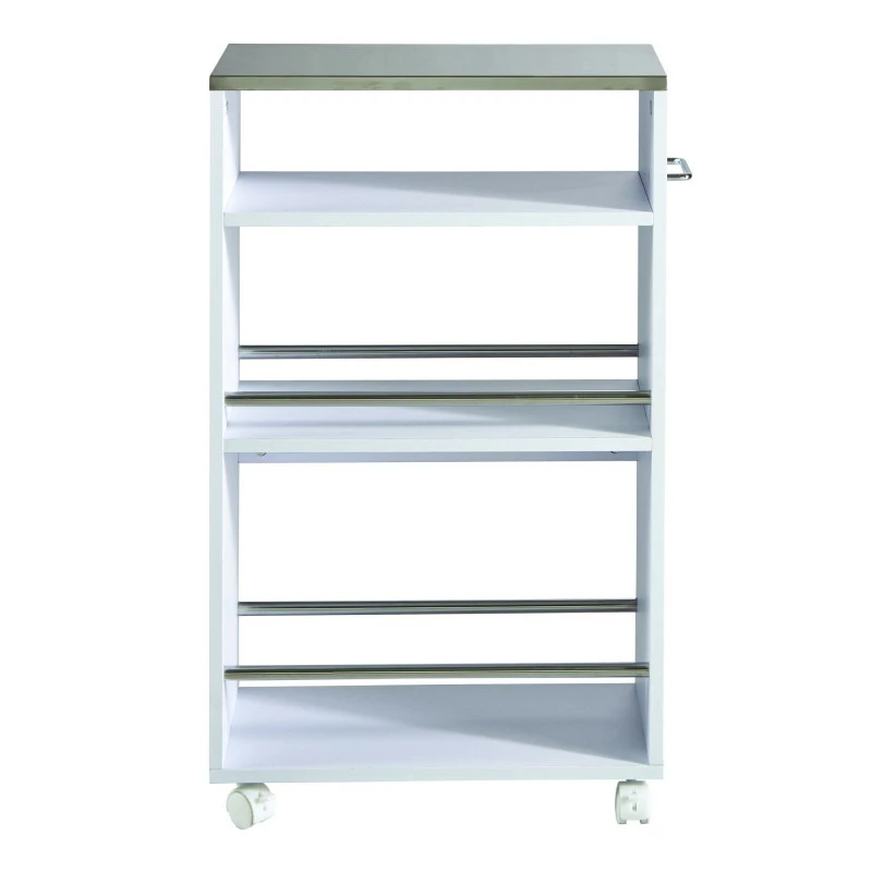 Équipée de 4 plateaux et d’un porte torchon, cette desserte offre de nouveaux espaces de rangement.