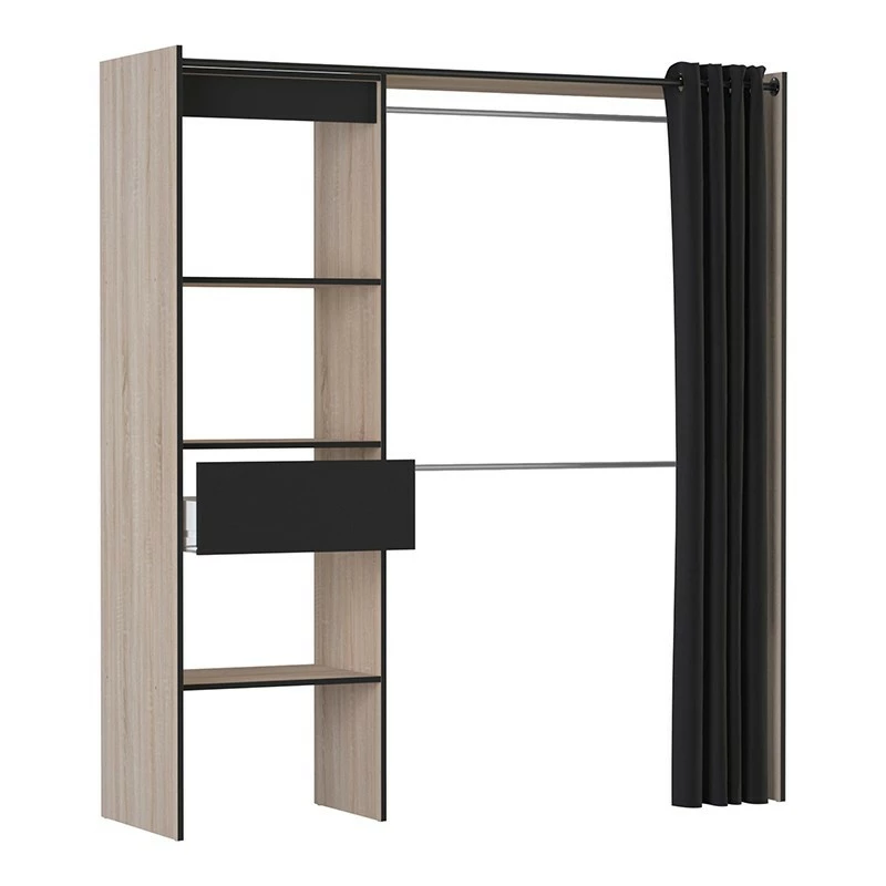Le rideau noir en polyester (L203 x H200 cm) est fourni avec le meuble.
