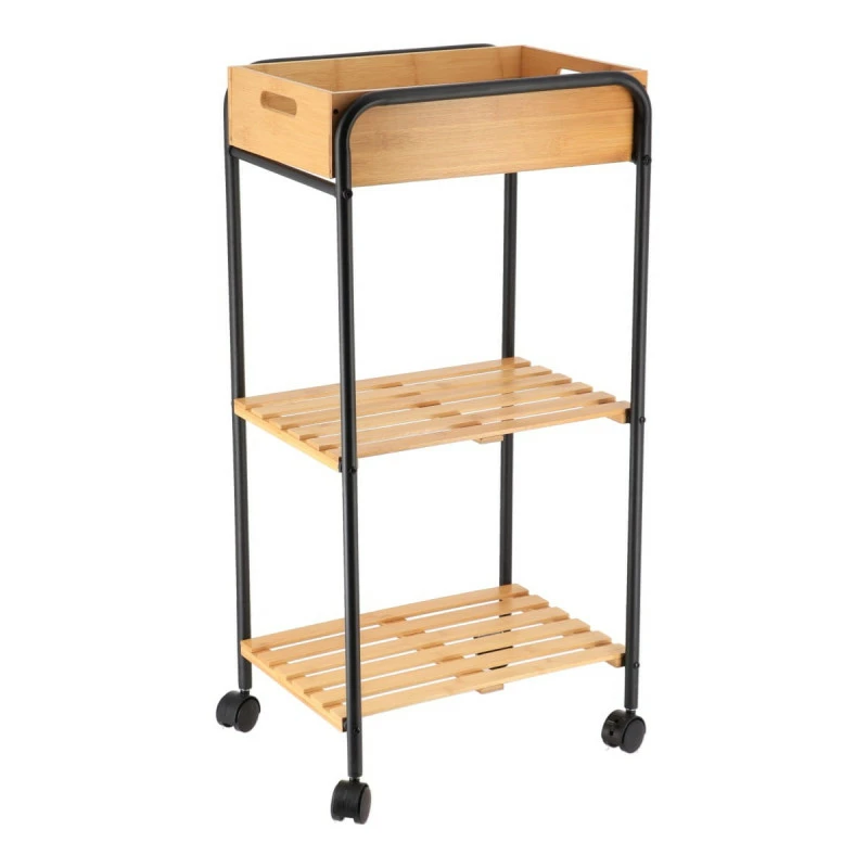 La desserte en métal noir et bambou 1 niche + 2 niveaux saura vous apporter un espace de rangement privilégié.