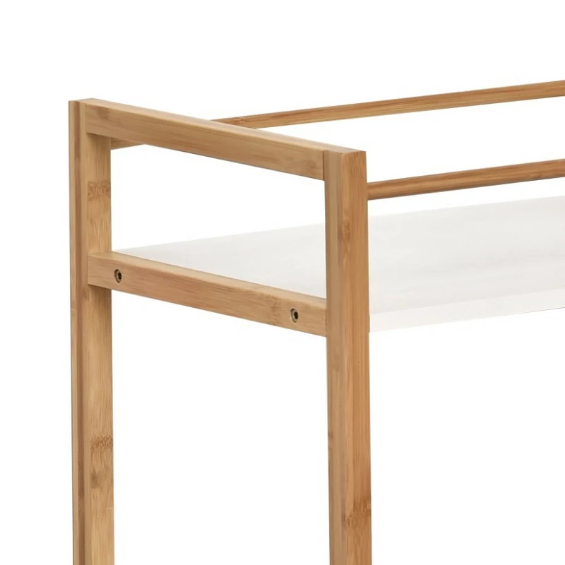 Meuble de salle de bain 3 niveaux structure en bambou. Ce meuble de la collection Nuovo blanc et naturel est conçu pour résister à l’humidité ambiante d’une salle de bain. Idéal pour ranger produits et serviettes de bain…