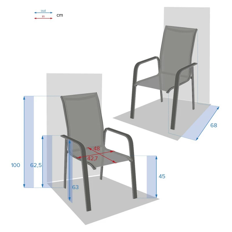 Conçu spécialement pour l’extérieur, la structure est en aluminium traité époxy qui la protège de la rouille et l’habillage est en texaline (polyester enduit PVC).