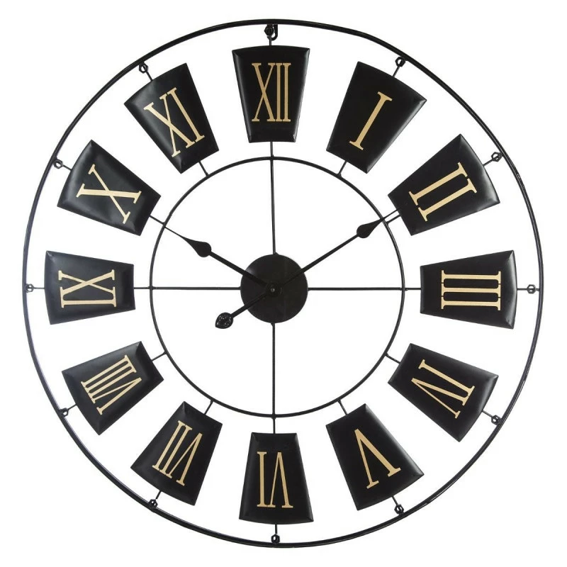 Horloge en métal chiffres romains coloris noir. Pour un style moderne et contemporain.