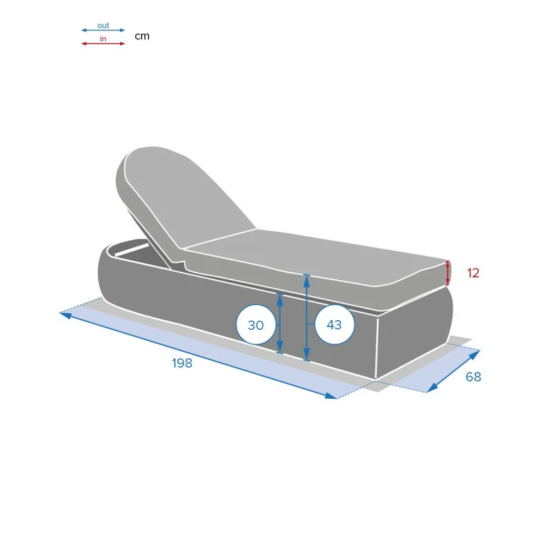 Le lit piscine s’ajuste sur 5 positions, dont une position complètement à plat.