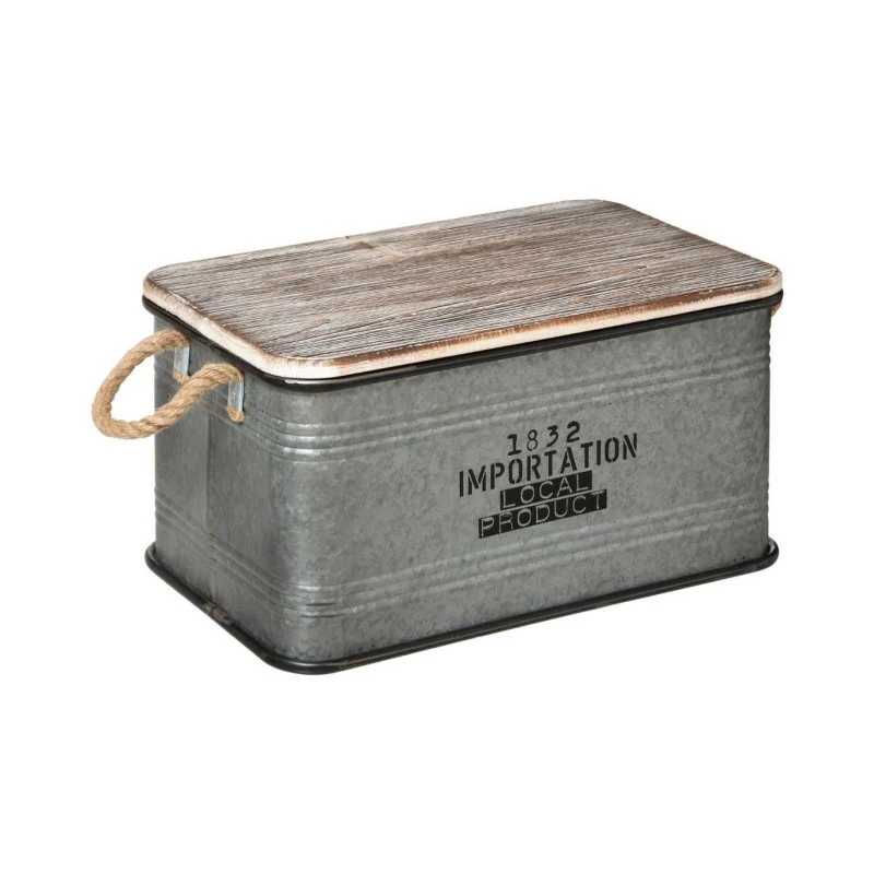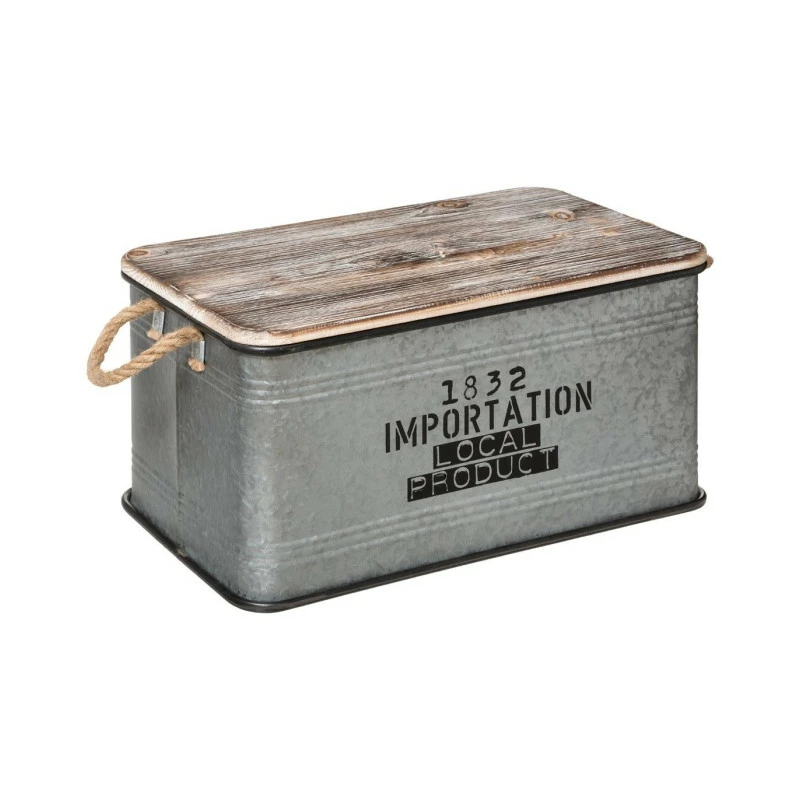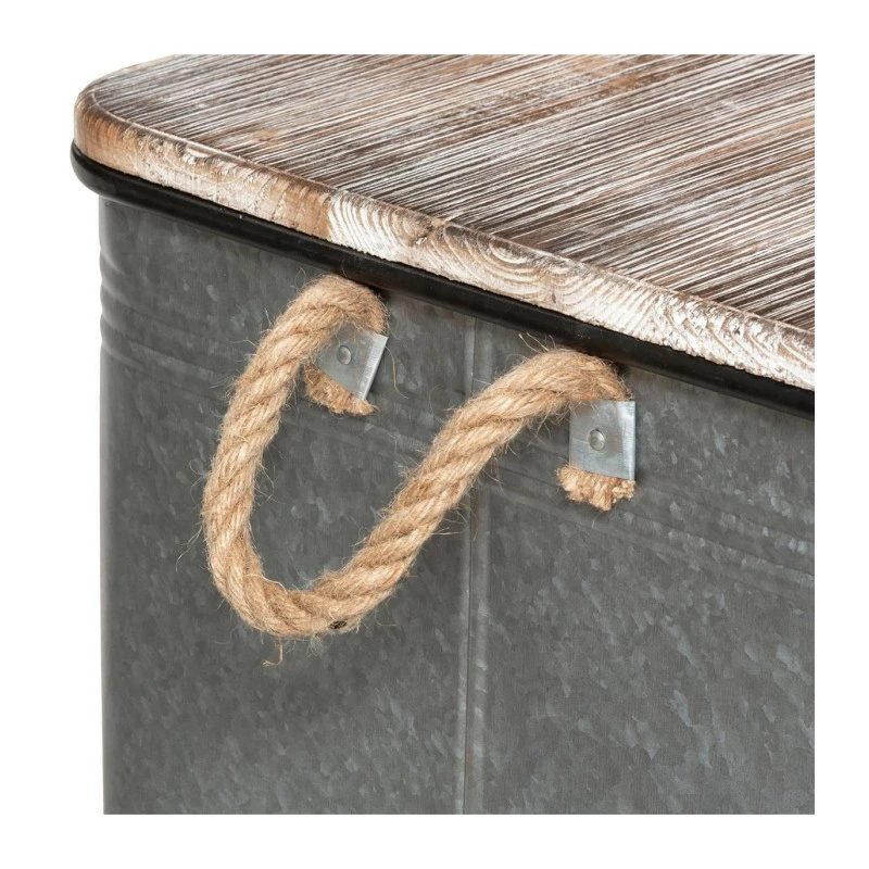 Lot De 3 Malles Métal Gris Plateau Bois Atmosphera