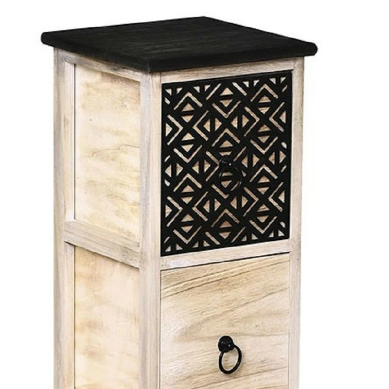 2 tiroirs décorés avec découpes, du plus bel effet. Livré monté.