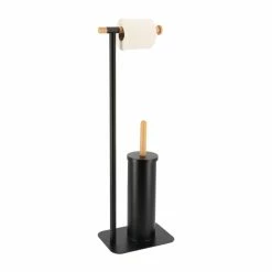 Brosse + Dérouleur WC Métal Noir Et Bambou