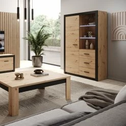 Vitrine 3 Portes LED Coloris Bois Clair Warschau