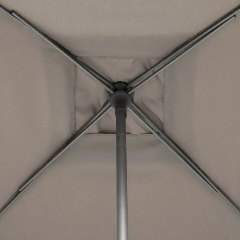 Cet été, protégez vous du soleil avec le parasol mat central carré en coloris taupe de la marque Hespéride.