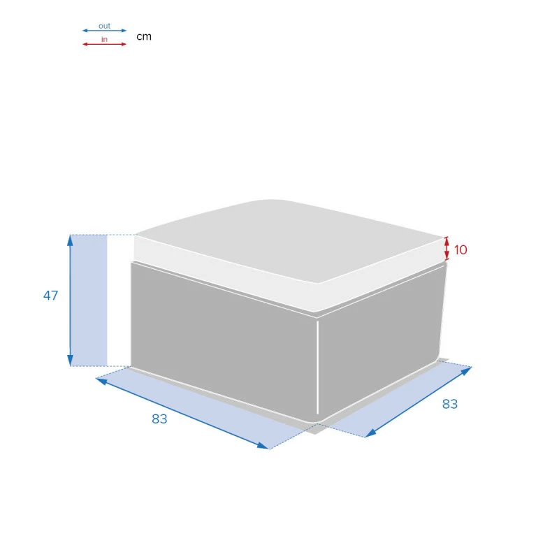 Le coussin est déhoussable pour un entretien facile. Leur tissu en oléfine 240 g/m² est traité déperlant afin de faciliter l’élimination des petites pluies.