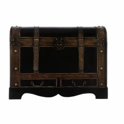 Lot De 3 Malles Métal Noir Plateau Bois Atmosphera