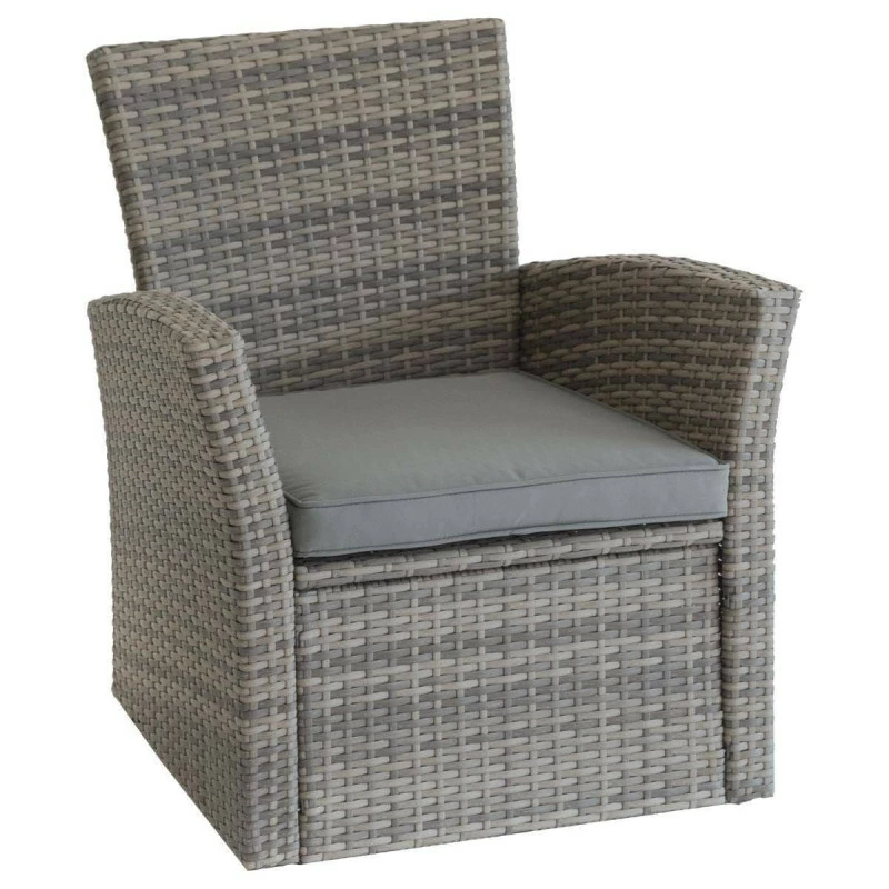 Le salon dispose d’une structure en acier traité époxy antirouille et d’un habillage en résine tressée résistant aux UV.