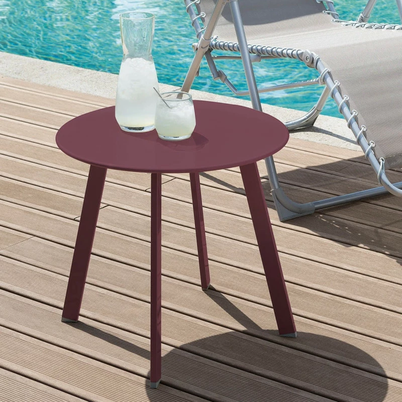 Cet été, optez pour la table d’appoint extérieure Saona 50 cm en coloris bordeaux de la marque Hespéride.