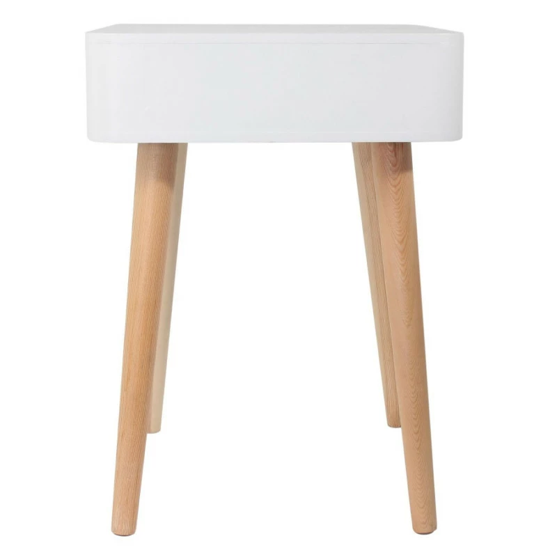 Table De Chevet Pieds Bois 1 Tiroir Blanc – Image 5