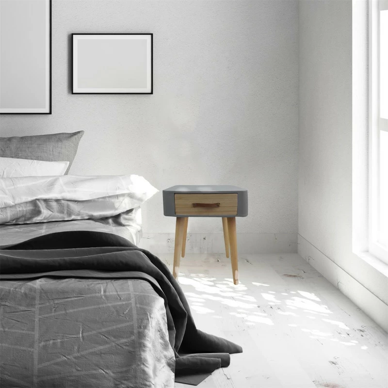 Table De Chevet Pieds Bois 1 Tiroir Gris – Image 8