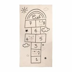 Pour amuser vos enfants tout en décorant leur chambre : le tapis marelle en coloris beige 80 x 150 cm de la marque Atmosphera.