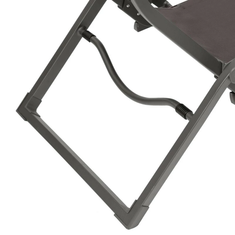 Conçu pour résister, le transat dispose d’une structure en aluminium traité époxy antirouille et d’une assise en texaline (polyester enduit PVC) 570 g/m².
