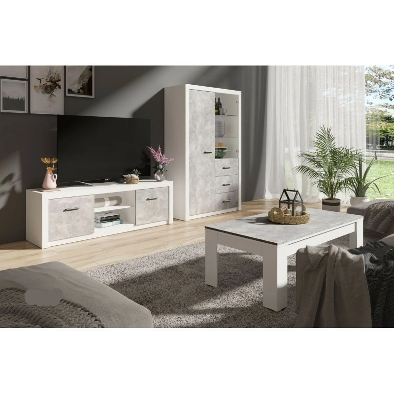 Vitrine 2 Portes Blanc Et Gris Béton Gent – Image 3